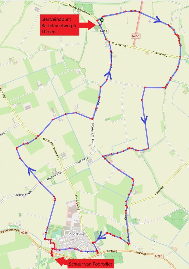 De tocht wordt rond 13.30 uur vervolgd via de Stoofstraat, Tolweg, Deestraat, Langeweg, Pelleweg, Roolandsedijk terug naar de Bartelmeetweg.